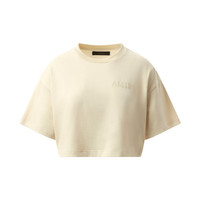 Amiri Embroidered Cropped T-Shirt in Alabaster