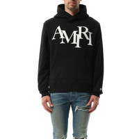 Stay stylish and comfortable with the Amiri Staggered Hoodie in Black. Crafted with high-quality materials, this hoodie features a unique staggered design that sets it apart from the rest. With its sleek black color, it's the perfect addition to any casual or streetwear wardrobe. - Composition: 100% Cotton - Amiri staggered logo at the front - Kangaroo pocket - Long sleeve - Ribbed cuffs and hem - Straight hem - Made in USA Model is 192 cm and wears size M SKU: AMJYHD1094 001