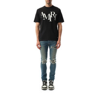 Crafted with quality and style in mind, this t-shirt features the iconic Amiri logo, adding a touch of sophistication to any outfit. Made with the finest materials, this t-shirt offers comfort and durability, making it a versatile and timeless piece for any fashion-forward individual. - Composition: 100% Cotton - Logo on the front - Straight fit - Short sleeves - Made in Italy Model is 192 cm and wears size M SKU: AMJYTE1149 001