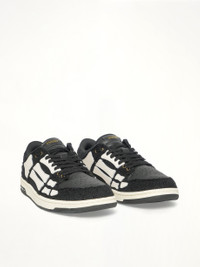 Amiri's Boucle Skeleton Low Top Sneaker in Black is a stylish and edgy footwear choice. These sneakers feature a unique design that combines comfort with a bold aesthetic. - Composition: UPPER : 45% PL 21% VI 13% PA 11% WO 10% PC - Low top silhouette - Distinctive skeleton design - Black boucle fabric - Lace-up closure - Rubber sole for traction - Made in Vietnam SKU: AWFOSR1135 001