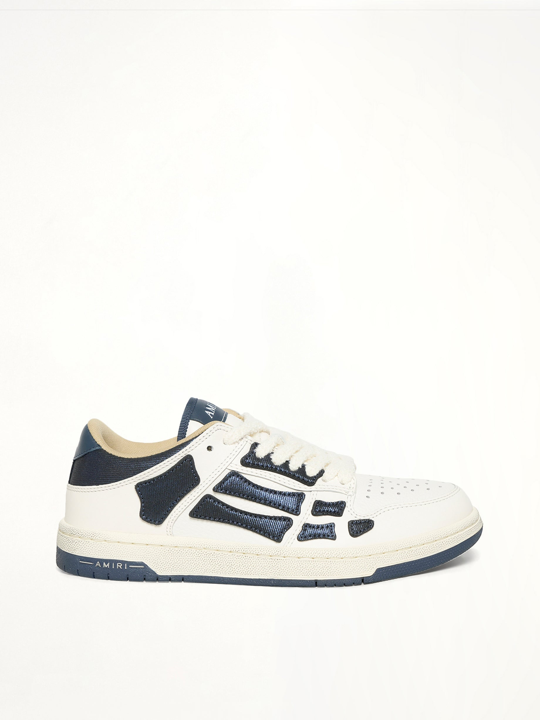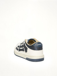 Amiri's Denim Skeleton Low Top Sneakers in Wet Shimmer is a bold statement piece that combines edgy design with modern flair. These sneakers feature a unique skeleton motif that adds a touch of rebellious style to any outfit. - Composition: UPPER :100% COW LEATHER - Low top silhouette for a casual, laid-back look - Distinctive skeleton design for a standout appearance - Wet shimmer finish for a glossy, eye-catching effect - Lace-up closure for a secure fit - Comfortable sole for all-day wear - Made in Vietnam SKU: AWFOSR1134 393