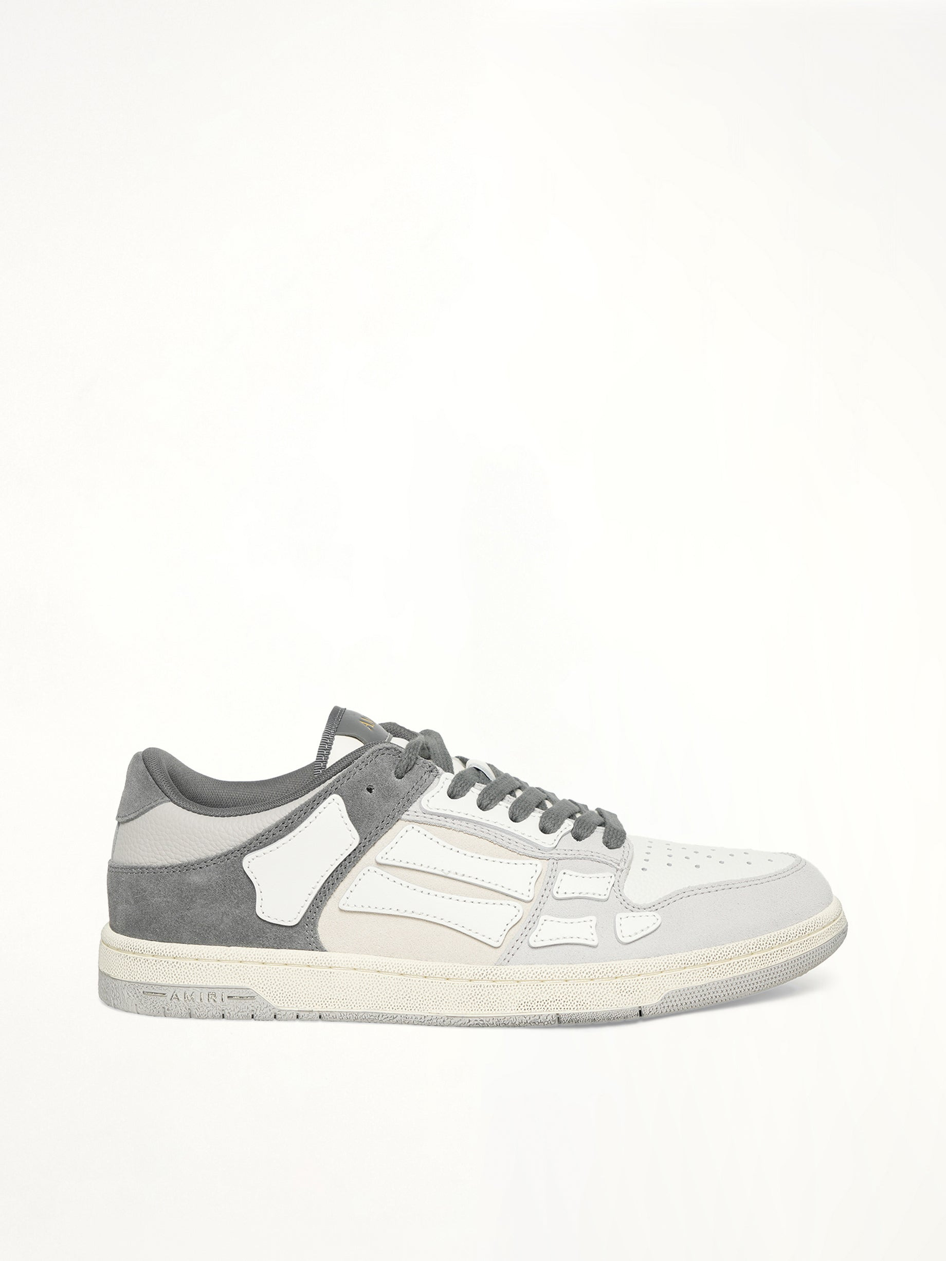 Amiri's Distressed Skeleton Low Top Sneaker in Dark Grey is a stylish and edgy footwear choice that combines a unique design with comfort. These sneakers feature a distinctive skeleton motif that adds a bold statement to any outfit. - Composition: UPPER :100% COW LEATHER - Low top silhouette for a casual look - Distressed detailing for a vintage-inspired aesthetic - Dark grey colorway for versatile styling - Skeleton motif for a standout design - Lace-up closure for a secure fit - Made in Vietnam SKU: AMFOSR1168 904