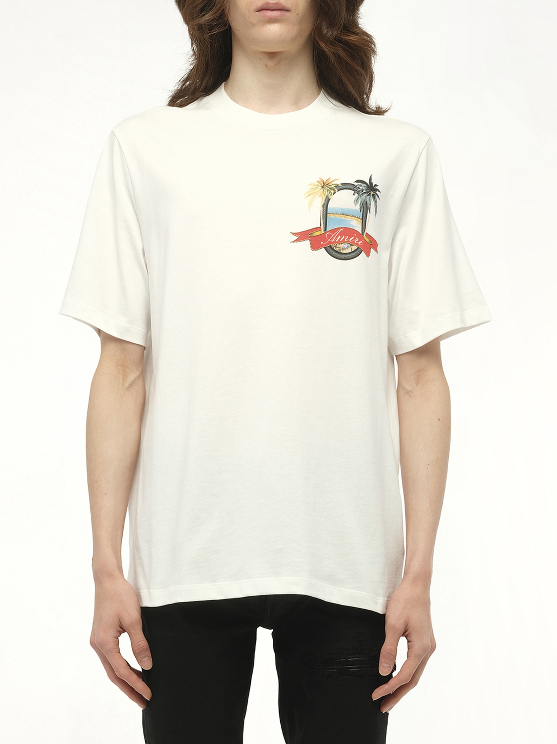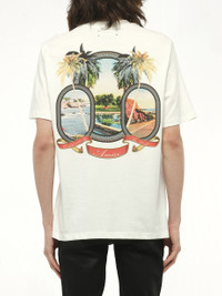 AMIRI's MA Paradise T-Shirt in Ivory is a stylish and versatile piece that effortlessly elevates any casual ensemble. Perfect for any occasion, this t-shirt combines comfort with a touch of luxury. - Composition: 100% Cotton - Classic crew neck design - Signature AMIRI logo detailing - Relaxed fit for everyday wear - High-quality craftsmanship Model is 187 cm and wears size M SKU: AMJYTE1217 127