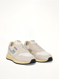 Autry's Reelwind Low Sneaker in White/Silver is a stylish and versatile footwear choice, perfect for both casual and semi-formal occasions. With its sleek design and comfortable fit, it effortlessly complements any outfit. - Composition: Upper Material: 20% cracked cow leather; 30% suede leather; 5% cow leather; 40% nylon / Lining: 40% pigskin; 50% towel; 10% nylon / Outsole: 60% Phylon; 40% rubber - Low-top silhouette for a modern look - White leather upper with silver accents - Cushioned insole for all-day comfort - Durable rubber outsole for traction - Lace-up closure for a secure fit - Made in - SKU: WWLMMU01