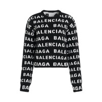All-Over Logo Cropped Sweater in Black/White