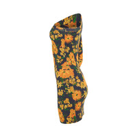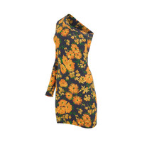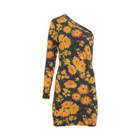 Long sleeves asymmetric mini dress in yellow/navy with all-over orange floral print, tight fit and straight hem - Composition: 94% Cotton, 6% Elastane - All-over orange floral print - Tight fit - Long sleeves - Straight hem SKU: 720571TNVJ47364