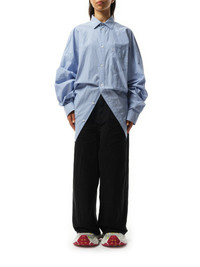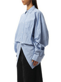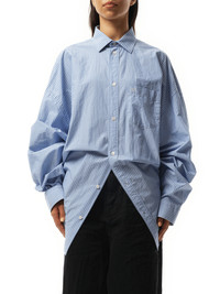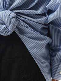 This long sleeve shirt in blue and white features a stylish knotted design. With its breathable and comfortable fabric, it's perfect for any casual or dressed-up occasion. Made with high-quality materials, this shirt is both stylish and durable. - Composition: 100% Cotton - Vertical stripe pattern - Front button fastening - Buttoned cuffs - Embroidered logo at the chest - Chest patch pocket Model is 175 cm and wears size 36 SKU: 809158TRM264640