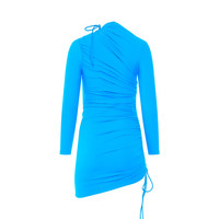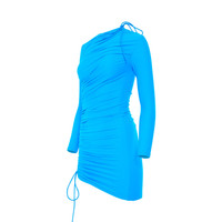 Long sleeves mini matte spandex dress in cyan with stretch-design, gathered detailing, adjustable fit and round neck - Composition: 80% Polyamide, 20% Elastane - Stretch-design - Gathered detailing - Adjustable fit - Round neck - Long sleeves - Thigh-length - Drawstring detailing SKU: 704440TYK074960