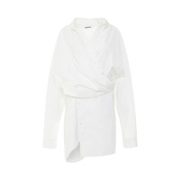 Long sleeves poplin wrap dress in white with classic collar, balloon sleeves, buttoned cuffs and side tie fastening - Composition: 100% Cotton, 100% Polyester - Wrap design - Classic collar - Balloon sleeves - Buttoned cuffs - Side tie fastening - Asymmetric hem - Long sleeves SKU: 704442TYB189000