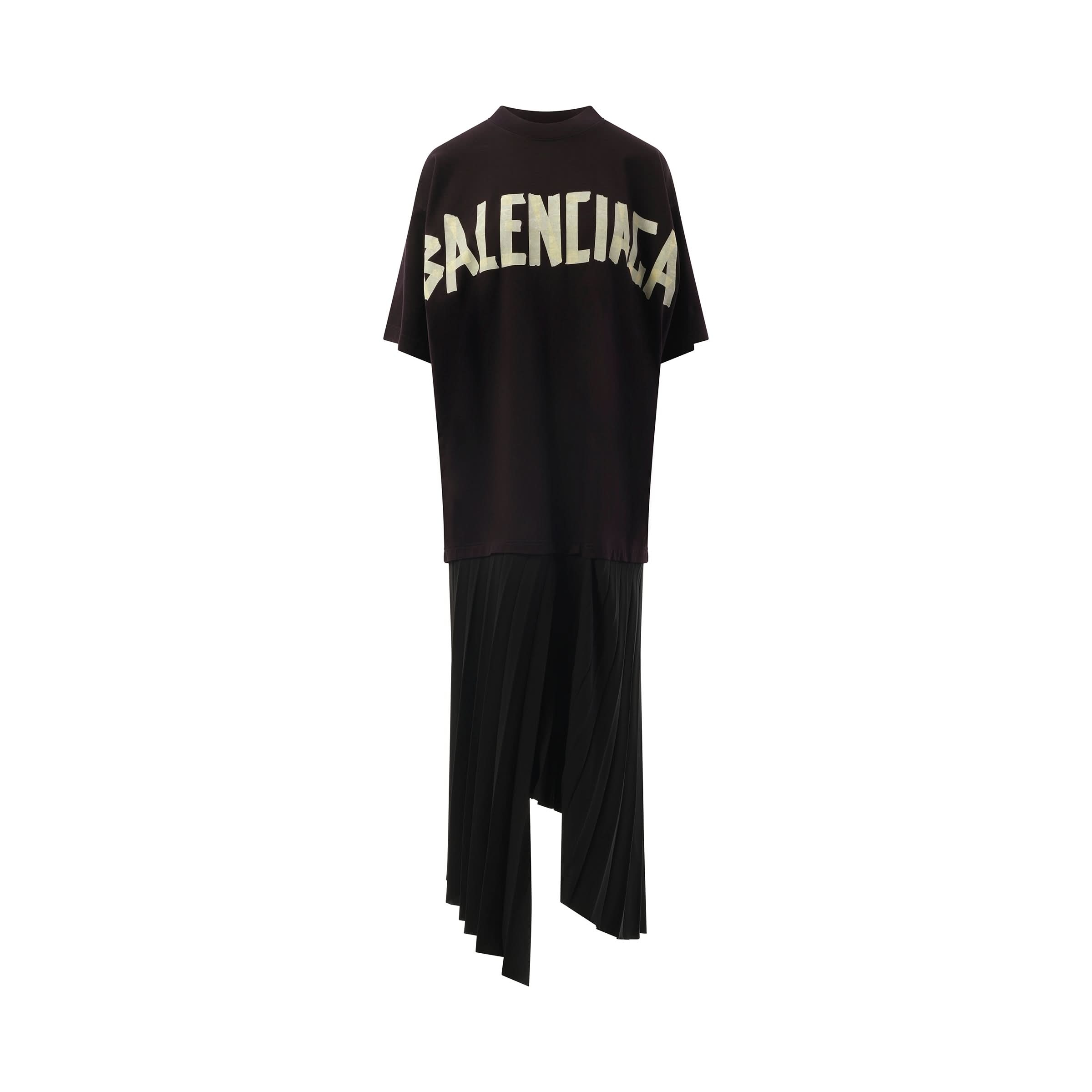 The pleated design adds texture and dimension to the classic t-shirt dress, making it perfect for both casual and dressy occasions. Made of quality fabric, this dress offers both comfort and style. - Composition: 100% Cotton - Round neck - Short sleeves - Logo print at the chest - Pleat detailing at the skirt - Logo print to the rear - Asymmetric hem Model is 175 cm and wears size 36 SKU: 790651TPO381000