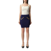 6 Button Vichy Knit Short Skirt in Midnight Blue