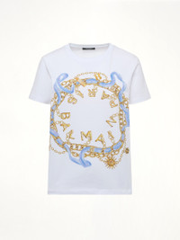 Balmain Paris Chain T-Shirt in White/Blue/Gold