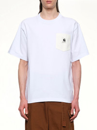 Sacai's Carhartt WIP Cotton Jersey T-Shirt in White is a versatile wardrobe staple that combines classic design with modern style. Perfect for casual wear, this t-shirt offers comfort and a timeless look. - Composition: Cotton 100% - Classic crew neck design - Short sleeves for a relaxed fit - Features subtle branding detail - Available in a clean, crisp white color - Ideal for layering or wearing on its own - Made in - Model is 187 cm and wears size 2 SKU: 2500995S 101