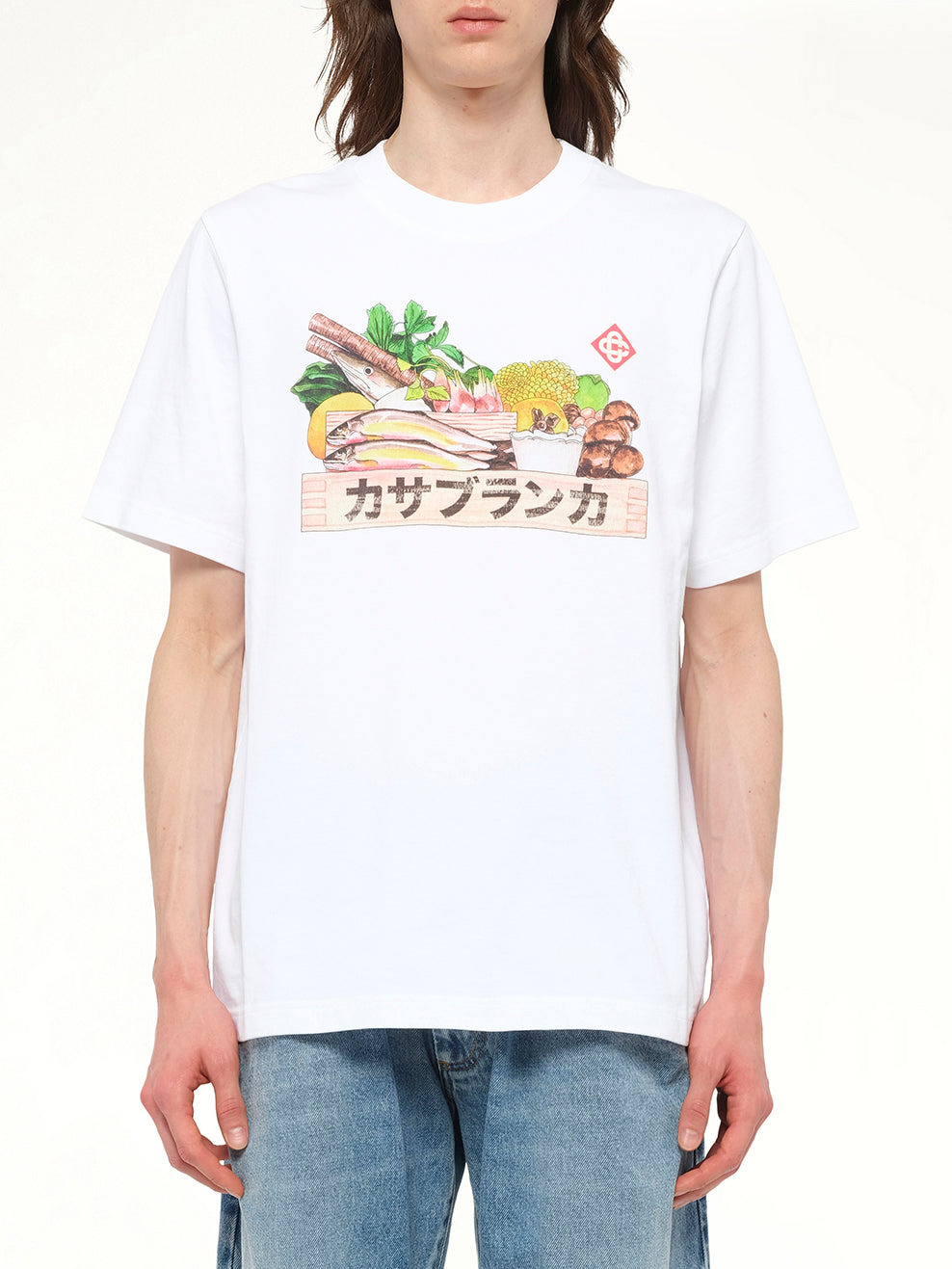 Casablanca's Casablanca Ingredient Printed T-Shirt in White is a stylish and contemporary piece that effortlessly combines comfort with a modern aesthetic. Perfect for casual outings, this t-shirt features a unique printed design that adds a touch of flair to any outfit. - Composition: 100% Organic Cotton - Color: White - Unique printed design - Short sleeves - Regular fit - Round neckline - Made in Portugal Model is 187 cm and wears size M SKU: MAW25JTS00103