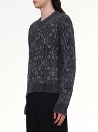 Fluffy Monogram Knit Sweater in Grey