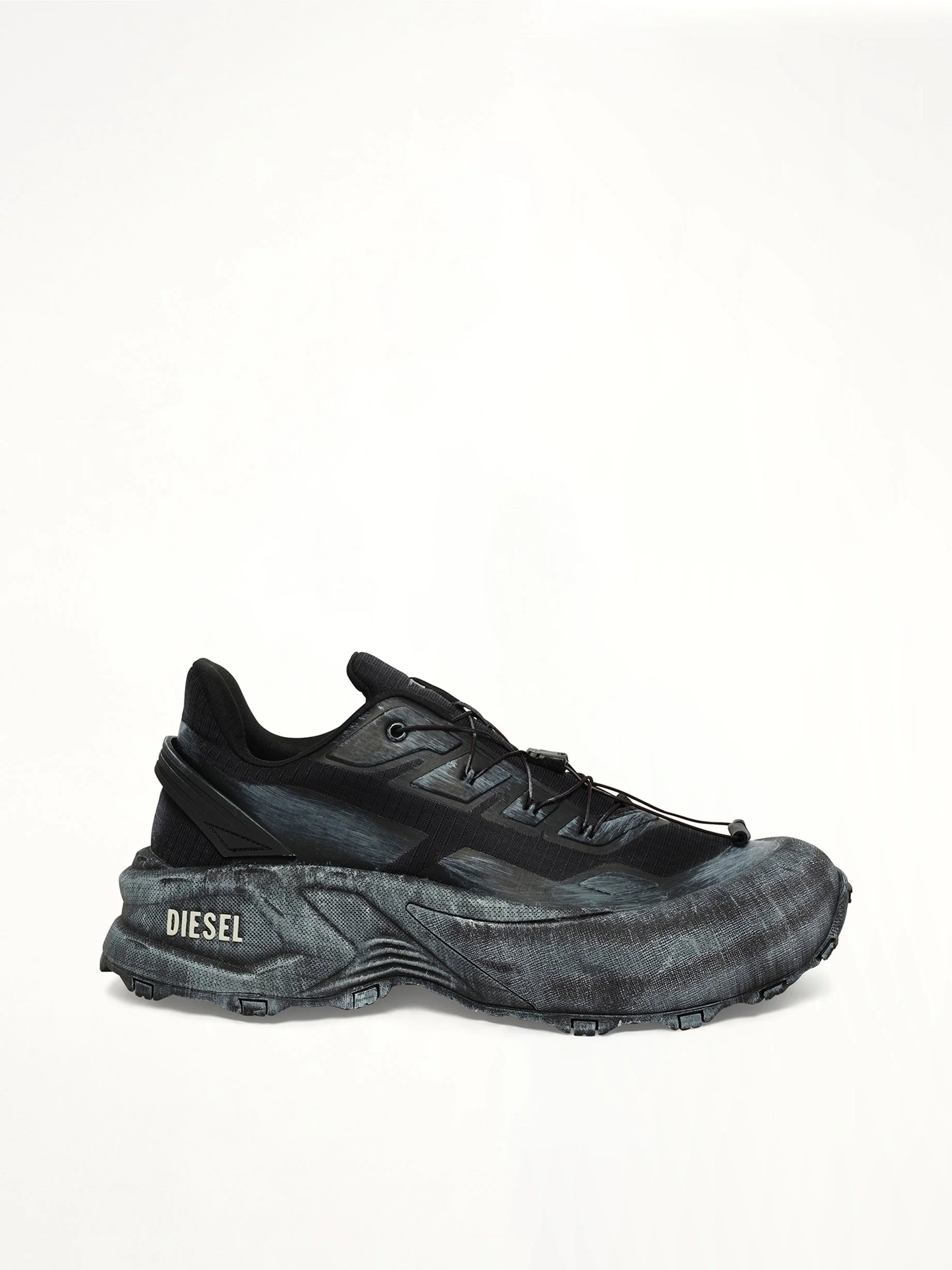 Diesel's D-CAGE Runner in Black is a sleek and modern sneaker designed for both style and comfort. Perfect for urban adventures, this shoe combines functionality with a contemporary aesthetic. - Composition: 100%Polyester, Contrast 100%Thermoplastic Polyurethanes - Features a breathable mesh upper for enhanced ventilation. - Equipped with a durable rubber sole for superior traction. - Includes cushioned insoles for all-day comfort. - Designed with a lace-up closure for a secure fit. - Accented with Diesel branding for a signature look. - Made in - SKU: Y03444P8140 T8013
