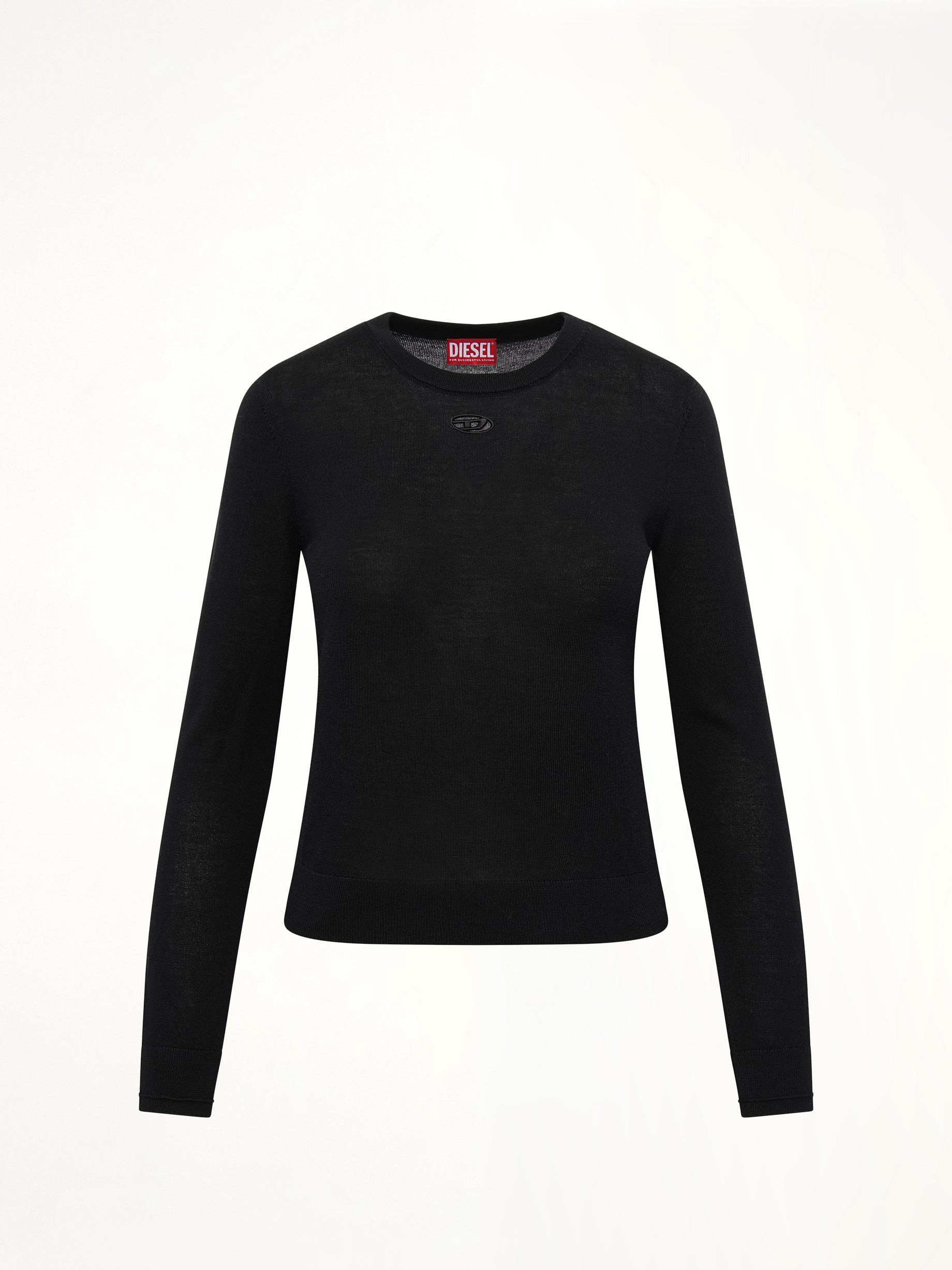 Diesel's M-ALINESA Knit Sweater in Black is a stylish and versatile addition to any wardrobe. This sweater combines comfort with a modern design, perfect for any occasion. - Composition: 100%Wool - Classic crew neck design - Ribbed cuffs and hem for a snug fit - Soft, breathable knit fabric - Subtle Diesel branding - Available in multiple sizes - Made in N/A Model is 178 cm and wears size S SKU: A174980DCCH 9XX