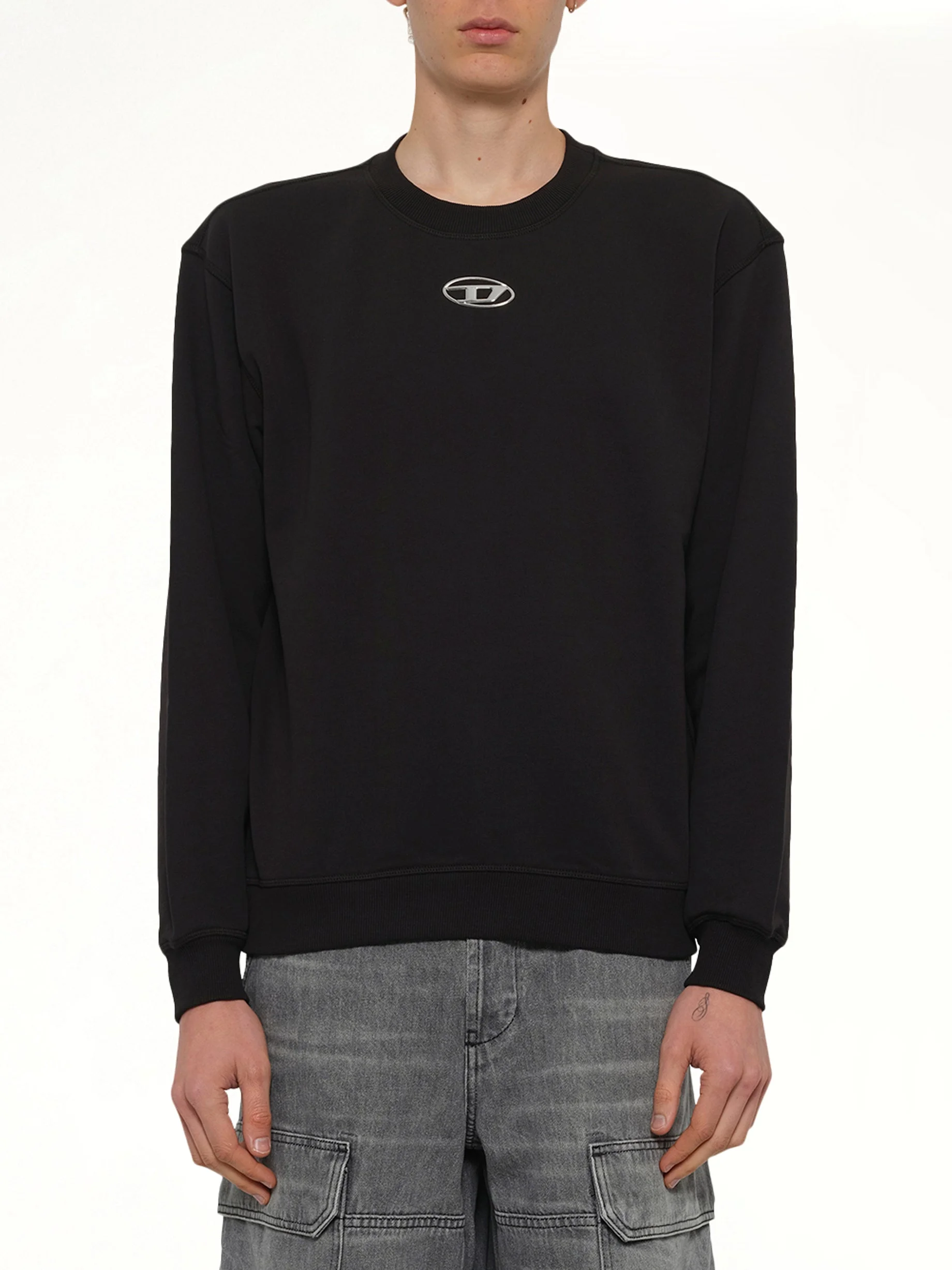Diesel's S-NORM-IOD Sweatshirt in Black is a stylish and versatile addition to any wardrobe. This sweatshirt combines comfort with a modern design, making it perfect for casual outings or relaxed days at home. - Composition: 100%Cotton - Classic crew neck design - Ribbed cuffs and hem for a snug fit - Subtle Diesel branding on the chest - Relaxed fit for everyday comfort - Available in multiple sizes - Made in - Model is 187 cm and wears size M SKU: A204460BKBW 900