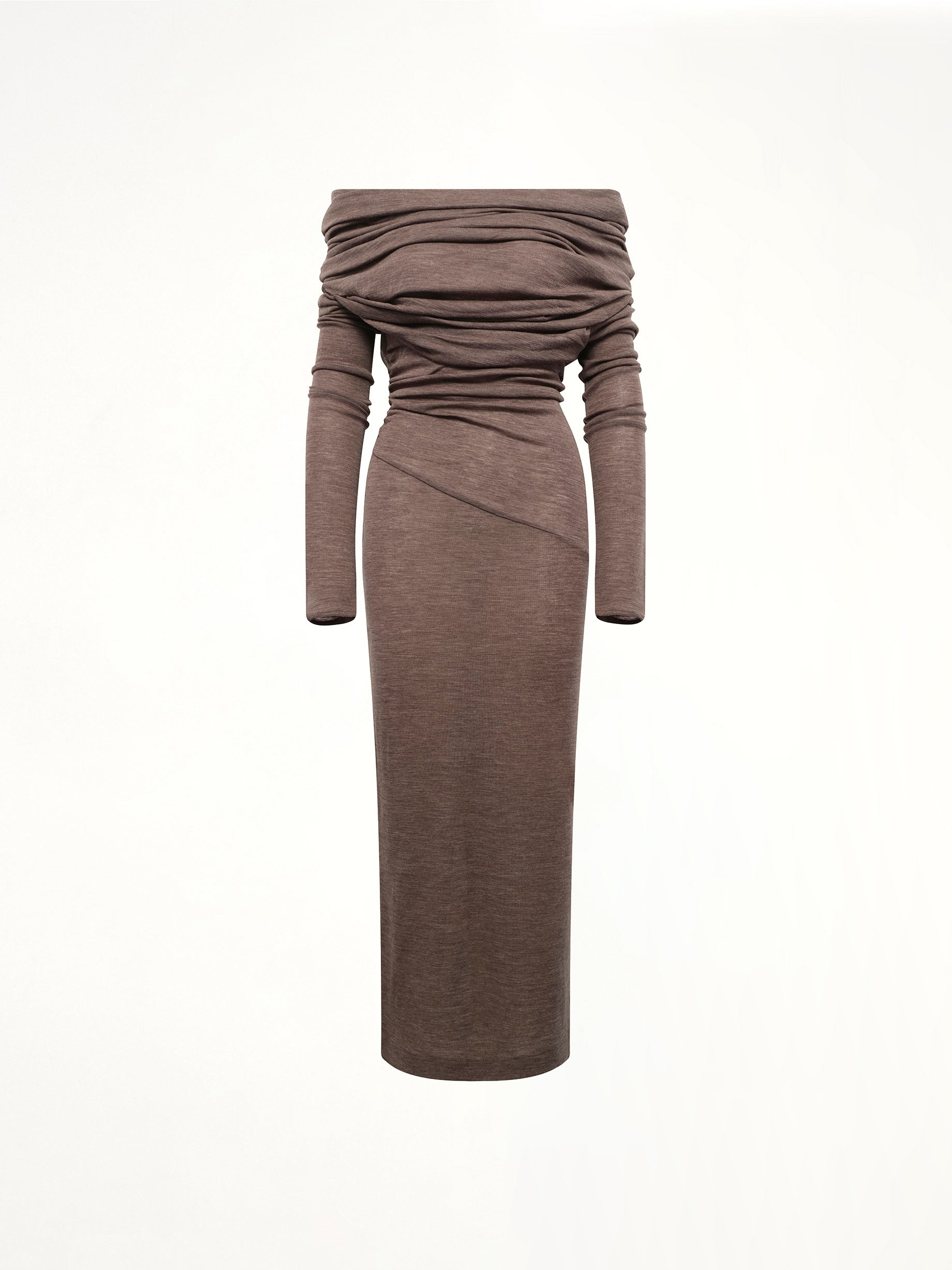 Entire Studios's Bound Midi Dress in Pinecone is a sophisticated and versatile piece that effortlessly combines elegance with modern style. Perfect for any occasion, this dress offers a flattering silhouette and timeless appeal. - Composition: 100% Wool - Midi length for a classic and elegant look - Rich pinecone color adds a touch of warmth - Designed with a fitted bodice and flowing skirt - Features a subtle back zipper for easy wear - Ideal for both day and evening events - Made in China Model is 178 cm and wears size S SKU: ESW-W25-6018-PC