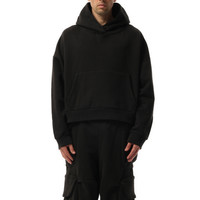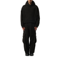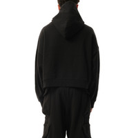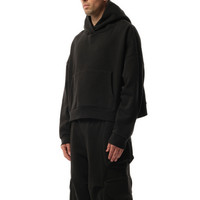 Made with a high quality fabric, it offers maximum protection from the elements while maintaining a sleek and stylish design. With its heavy weight and deep black color, this hood is perfect for any outdoor adventure or urban setting. - Composition: 100% Cotton - Classic hood - Long sleeves - Ribbed cuffs and hem - Front pouch pocket - Made in China Model is 192 cm and wears size M SKU: ES2125SO