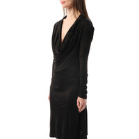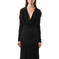 This elegant dress offers a versatile and sophisticated addition to any wardrobe, perfect for any occasion. Its soft and luxurious texture provides maximum comfort while effortlessly complementing your silhouette. - Composition: 100% Viscose - Cowl neck - Long sleeves - Above-knee length - Straight hem Model is 175 cm and wears size S SKU: O05HW601 001
