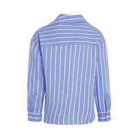 Upgrade your wardrobe with our Cuadro Asymmetric Shirt in Blue Stripe. The unique design adds a touch of sophistication to any outfit. Made with high-quality materials, this shirt is both comfortable and stylish. - Composition: 53% Silk, 35% Virgin Wool, 12% Polyamide - Vertical stripe print - Spread collar - Drop shoulder - Long sleeves - Buttoned cuffs - Chest patch pocket - Internal logo tag - Curved hem - Diagonal front button fastening SKU: 245SH0801566 3EV