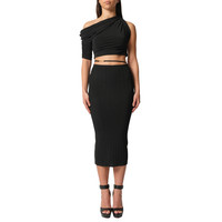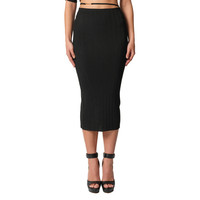 Made from high-quality fabric, its elegant silhouette flatters all body types. With its versatile design, this skirt effortlessly transitions from work to weekend, making it a practical and stylish choice. - Composition: 94% Viscose, 6% Polyester - Gold-tone logo lettering - High waist - Adjustable waist strap - Straight hem - Mid-calf length Model is 170 cm and wears size 36 SKU: 241KN3622358 990