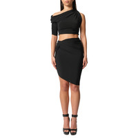 Made from high-quality materials, it features a draped design that accentuates your curves and adds a touch of sophistication to any outfit. Perfect for any occasion, this skirt is a must-have for any fashion-forward individual. - Composition: 71% Viscose, 21% Polyester, 8% Elastane - Draped detailing - Asymmetric design - High-waisted - Thigh-length Model is 170 cm and wears size small SKU: 243SK0642381 990