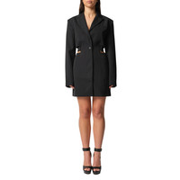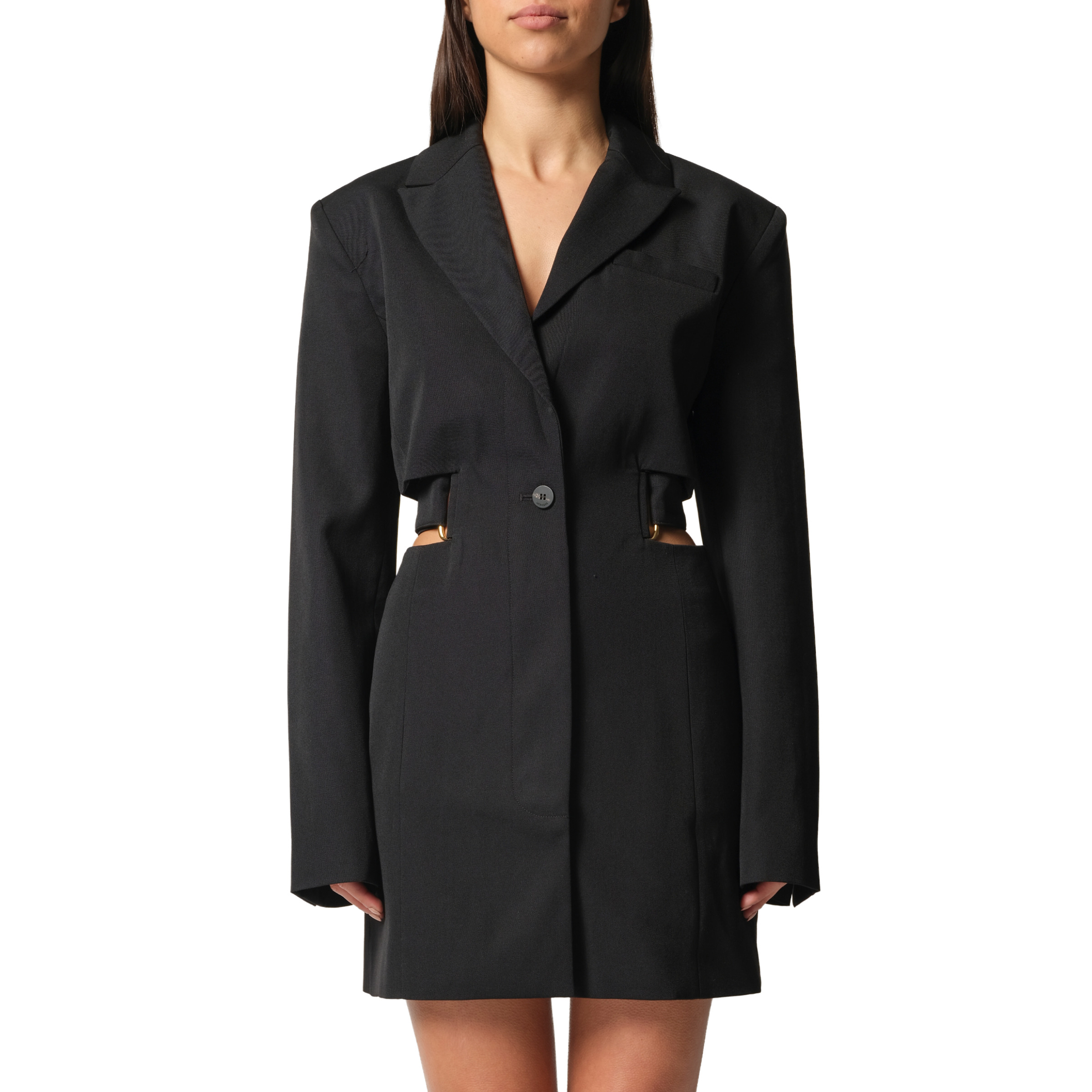 La Robe Bari in Black is a sleek and timeless dress that exudes sophistication and elegance. Made with high-quality materials and expert craftsmanship, this dress is perfect for any formal occasion. With its classic black color, it can easily be dressed up or down. - Composition: 100% Virgin Wool - Notched lapels - Front button fastening - Long sleeves - Buttoned cuffs - Belted waist - Chest welt pocket - Rear welt pocket - Above-knee length - Straight hem Model is 170 cm and wears size 36 SKU: 241DR0161333 990