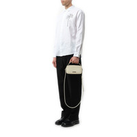 Jacquemus' Le Baneto Crossbody Bag in Light Ivory, a compact yet striking accessory designed with functionality and modern flair. The rectangular structure and front logo plaque make it a versatile staple for daily use. Ideal for elevating everyday looks with a clean, architectural finish. Calf leather exterior Zip-top closure Adjustable shoulder strap Silver-tone hardware Front metal logo Made in Italy SKU: 255BA4253000 115
