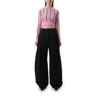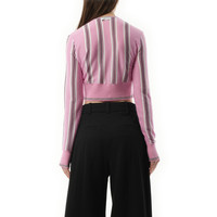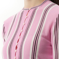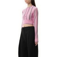 This Le Cardigan Spiaggia, featuring a pink and multicolour design, is perfect for any casual or beachy outing. Made with high-quality materials, it provides both comfort and style. Its unique design adds a pop of color to any outfit, making it a must-have for the summertime. - Composition: 90% Virgin Wool, 10% Polyamide - Knitted construction - Front button fastening - Vertical stripe pattern - Long sleeves - Ribbed cuffs and hem Model is 175 cm and wears size 36 SKU: 243KN5072414 043