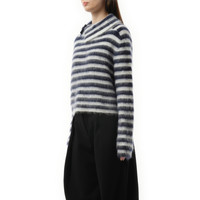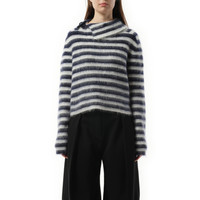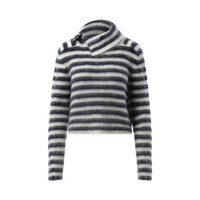 Made from high-quality materials, this sweater offers a perfect balance of warmth and breathability. The navy and multicolour design adds a pop of color to your wardrobe, making it a versatile choice for any occasion. - Composition: 46% Mohair, 37% Polyamide, 16% Wool, 1% Elastane - Brushed effect - Toggle fastening - Asymmetric neck - Long sleeves - Logo patch to the rear Model is 175 cm and wears size 36 SKU: 243KN5452317 045