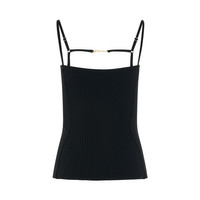Made with soft, lightweight fabric and designed with a flattering sleeveless cut, this top provides both style and comfort. Perfect for layering or wearing on its own, it's a must-have addition to your wardrobe. - Composition: 88% Viscose, 12% Polyester - Ribbed knit - Square neck - Adjustable spaghetti straps - Gold-tone logo plaque - Straight hem SKU: 241KN3542355 990