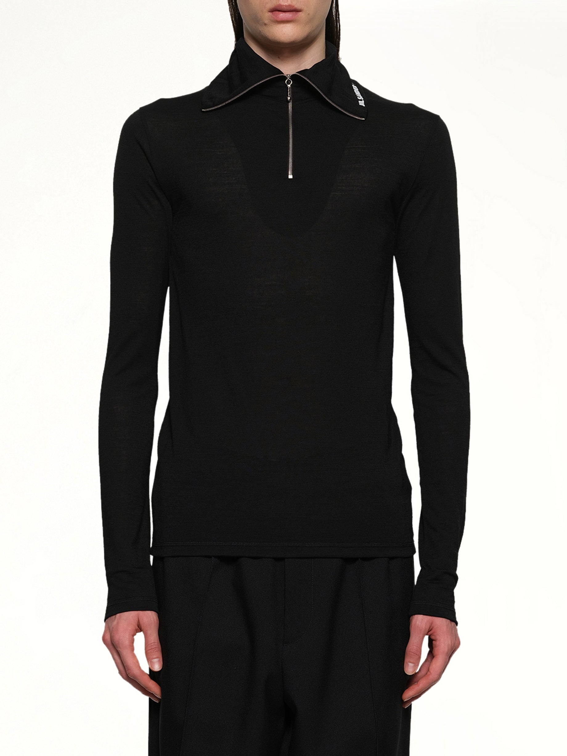 Zip Up High Neck Long Sleeve T-Shirt in Black