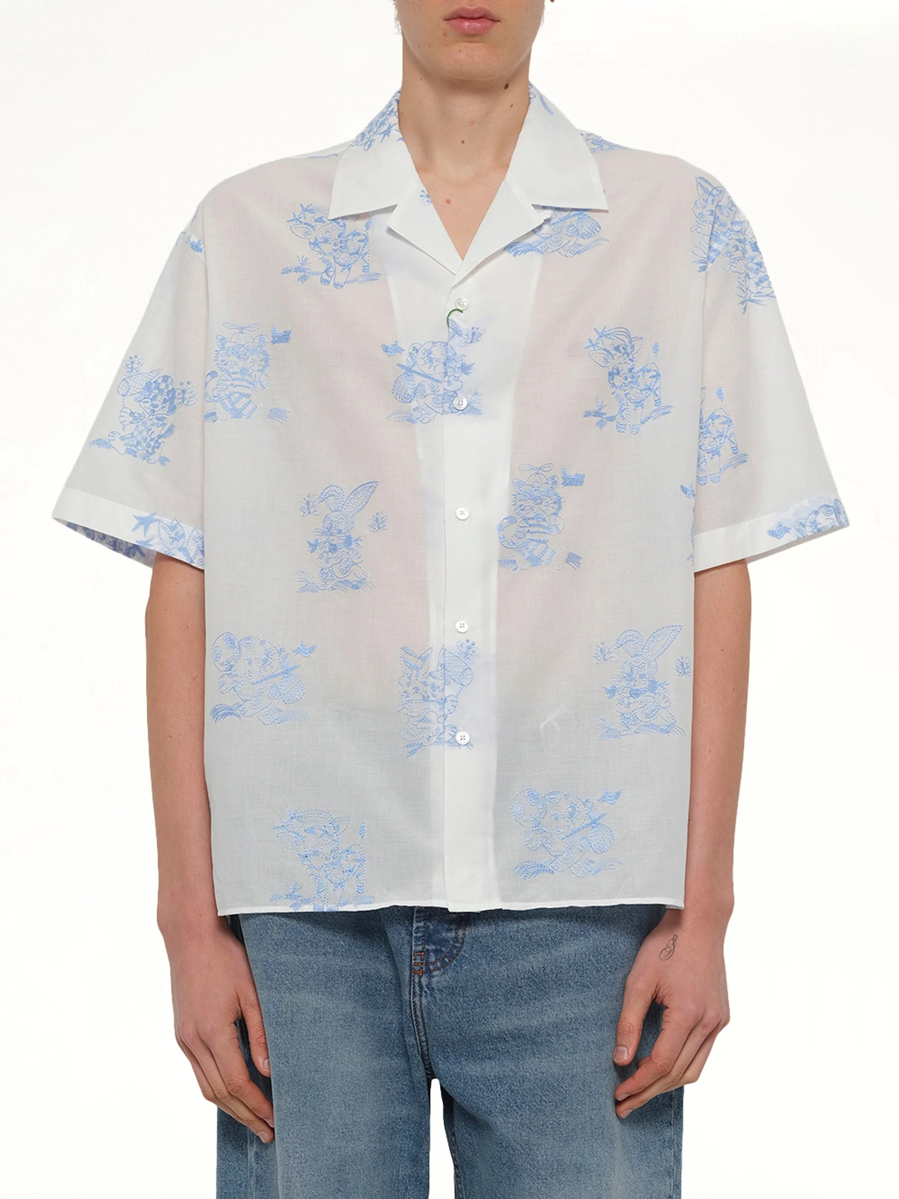 Kenzo Cartoon Hawaiian Short Sleeve Shirt in White