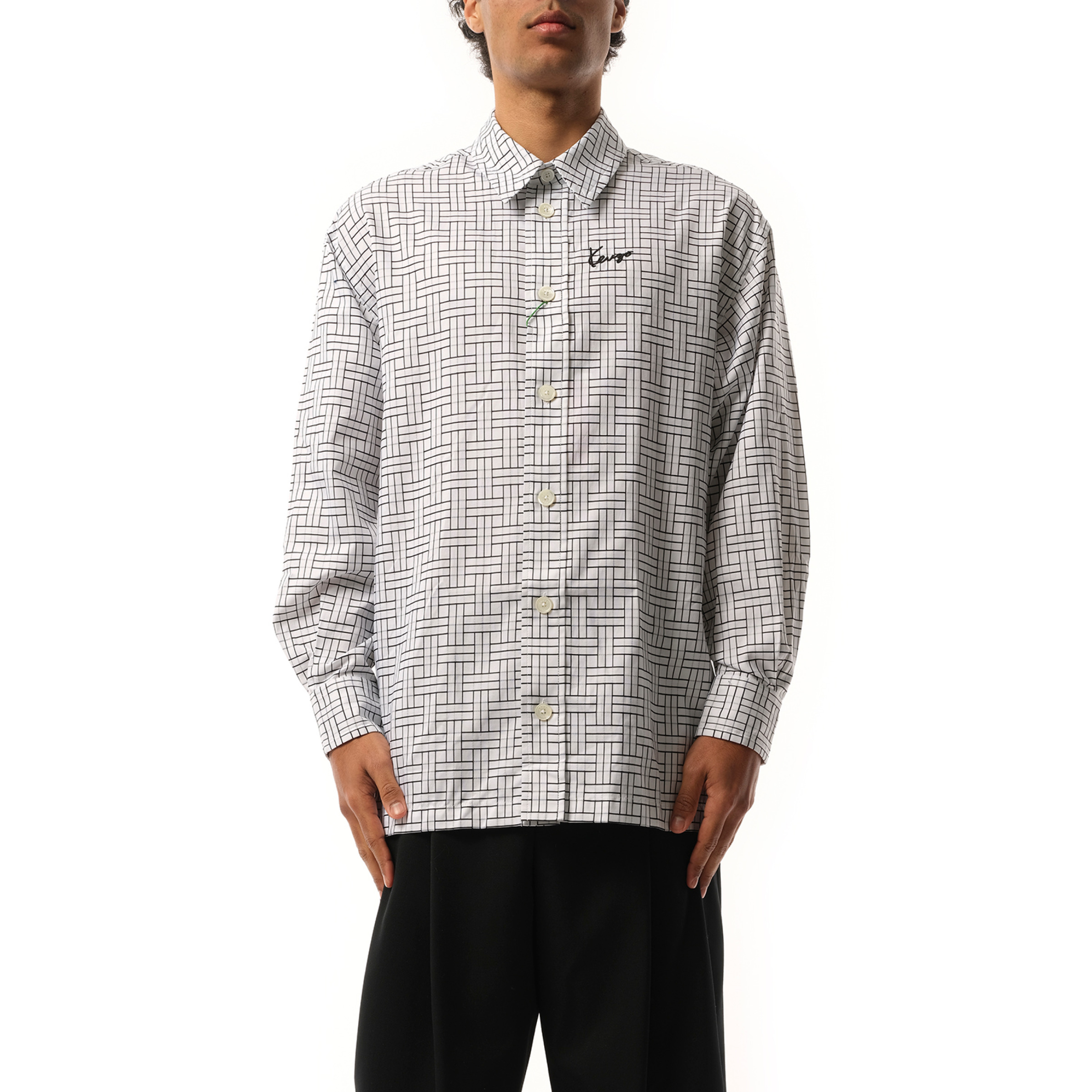 Expertly crafted from high-quality fabric, the Kenzo Weave Oversized Shirt in White offers a modern and stylish addition to any wardrobe. Featuring an oversized fit and intricate weaving, this shirt provides both comfort and sophistication for any occasion. - Composition: 100% Cotton - Check pattern - Straight-point collar - Embroidered logo - Long sleeves - Buttoned cuffs - Front button fastening Model is 192 cm and wears size M SKU: FE65CH5109JD 01