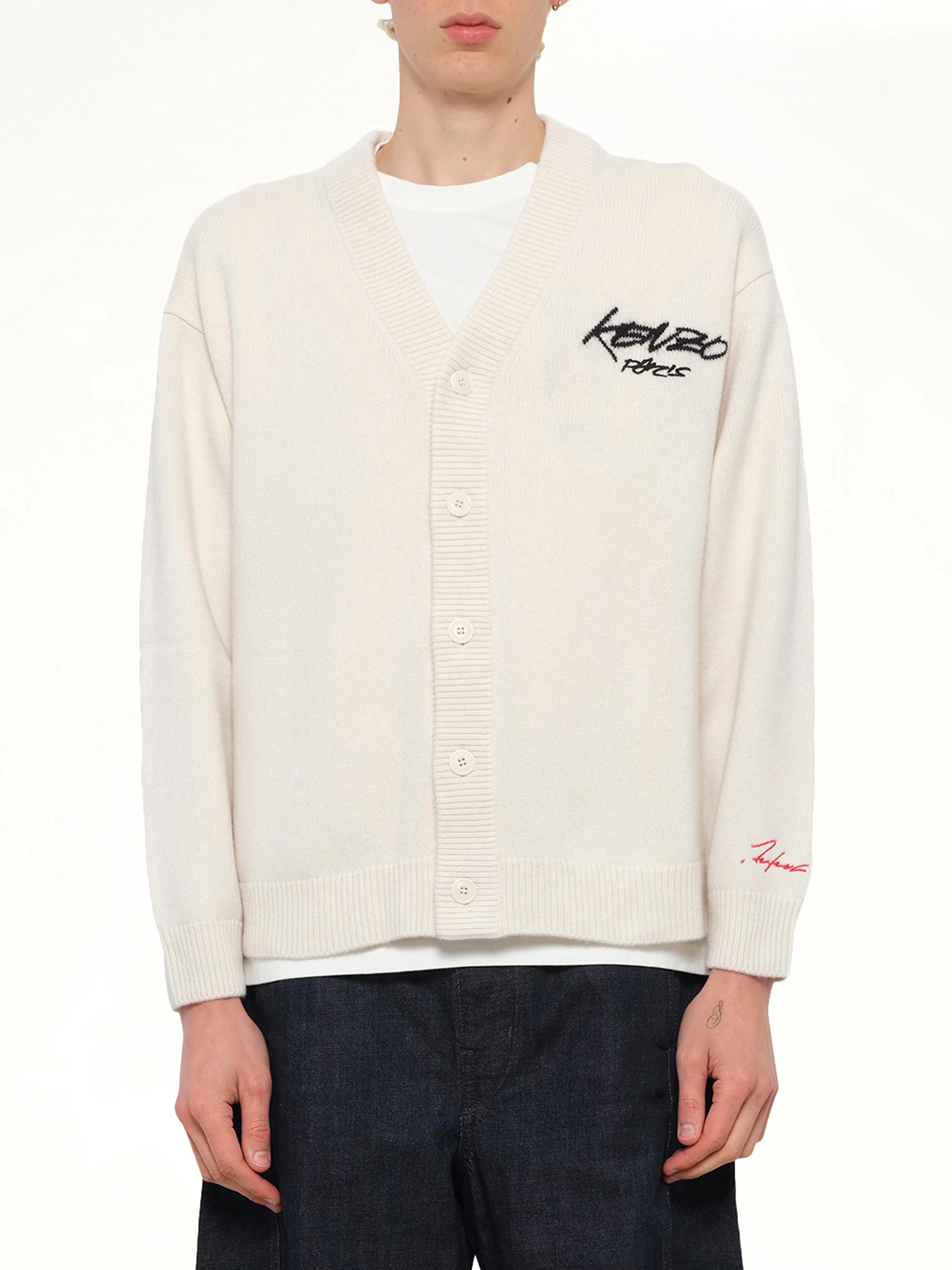 Kenzo's Kenzo x Futura 2000 Cardigan in Off White is a stylish collaboration piece that merges contemporary art with fashion. This cardigan features unique design elements that make it a standout addition to any wardrobe. - Composition: 100% Wool - Exclusive collaboration with artist Futura 2000 - Off white colorway for versatile styling - Distinctive graphic patterns - Comfortable and relaxed fit - Perfect for layering in cooler weather - Made in China Model is 187 cm and wears size M SKU: FF65CA7353BN 02