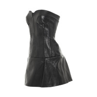 Beryn strapless pleated leather mini dress