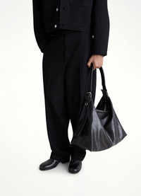 Lemaire's Belted Hobo Bag in Dark Chocolate is a sophisticated accessory that combines functionality with timeless style. Its rich hue and elegant design make it a versatile addition to any wardrobe. - Composition: Main material: 100% calf - Features a spacious main compartment for everyday essentials - Adjustable belt strap for a customizable fit - Secure top closure to keep belongings safe - Minimalist design with a modern silhouette - Perfect for both casual and formal occasions - Made in - SKU: BG0189LL0108 BR490