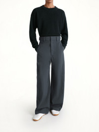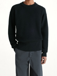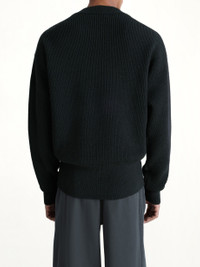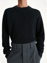 Lemaire's Boxy Round Neck Sweater in Black is a versatile and stylish addition to any wardrobe. Its minimalist design and relaxed fit make it perfect for both casual and formal occasions. - Composition: Main fabric: 100% wool - Boxy silhouette for a modern look - Round neck for a classic touch - Available in a timeless black color - Designed for comfort and ease of movement - Pairs well with a variety of outfits - Made in - SKU: TO1419LK1042 BK999