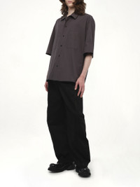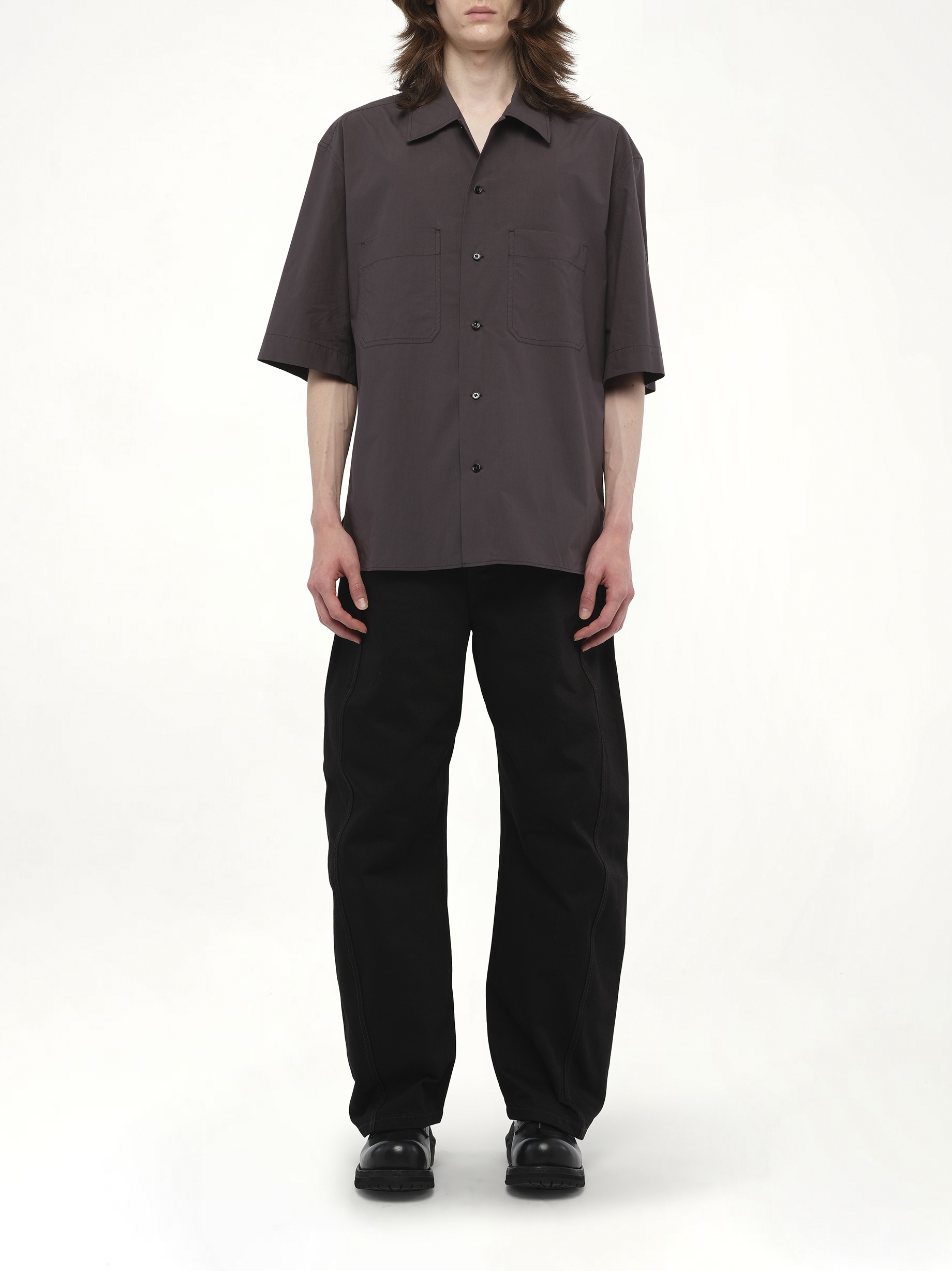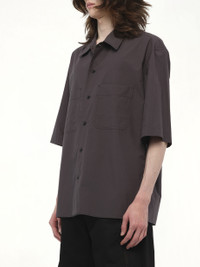 LEMAIRE's Convertible Shirt in Charcoal is a versatile, short-sleeved piece crafted from washed cotton poplin with a satin-like texture. Its relaxed silhouette, convertible collar, and practical patch pockets create a casual yet elevated look. A go-to essential for laid-back days with a refined touch. Composition: 100% washed cotton poplin Relaxed fit with voluminous short sleeves Convertible collar for versatile styling Two large patch pockets at the front Straight hem with side slits for ease of movement Model is 187 cm and wears size M. SKU: SH1175LF1364 BK980