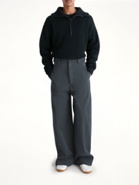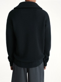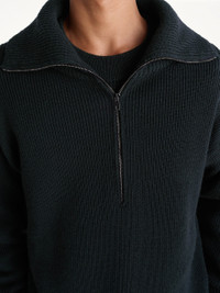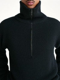 Lemaire's Half Zip Sweater in Black is a versatile and stylish addition to any wardrobe. This sweater combines modern design with classic elements for a timeless look. - Composition: Main fabric: 100% wool - Half-zip closure for adjustable comfort - Relaxed fit for easy layering - Ribbed cuffs and hem for a snug fit - High collar for added warmth - Minimalist design suitable for various occasions - Made in - SKU: TO1439LK1042 BK999