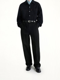 Lemaire's Maxi Barrel Workwear Pants in Black is a versatile and stylish addition to any wardrobe. These pants offer a modern silhouette with a focus on comfort and functionality. - Composition: Main fabric: 100% cotton Main lining: 100% cotton - Relaxed fit with a wide leg design - High-rise waist for a flattering look - Durable construction suitable for everyday wear - Features practical pockets for added convenience - Timeless black color for easy pairing with various outfits - Made in - SKU: PA1261LD1055 BK999