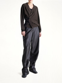 Lemaire's Relaxed Twisted Cardigan in Dark Cacao is a sophisticated addition to any wardrobe, offering a blend of comfort and style. Its unique twisted design and rich color make it a standout piece for any occasion. - Composition: Main fabric: 50% acrylic, 50% wool - Relaxed fit for comfortable wear - Twisted design adds a modern touch - Rich Dark Cacao color for versatile styling - Button-up front for easy layering - Long sleeves for added warmth - Made in - SKU: TO1082LK087 BR397