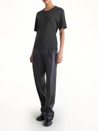 Lemaire's Rib SS T-Shirt in Squid Ink is a versatile and stylish addition to any wardrobe. This t-shirt offers a modern fit with a unique color that stands out. - Composition: Main fabric: 100% cotton - Short-sleeve design - Ribbed texture for added detail - Classic crew neckline - Relaxed fit for comfort - Distinctive Squid Ink color - Made in - SKU: TO1440LJ1016 BK998