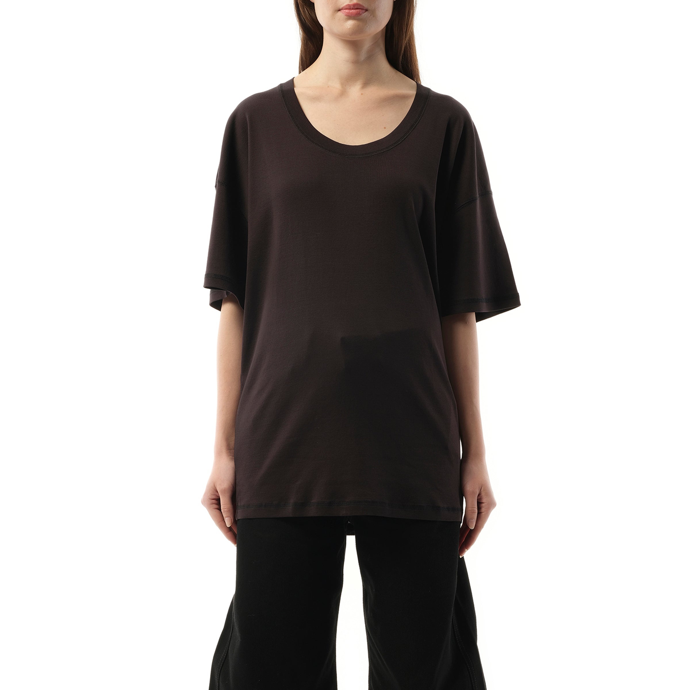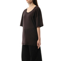 This rib t-shirt in squid ink is a versatile addition to any wardrobe. Made with a ribbed fabric, it offers a comfortable and flattering fit. With its squid ink color, it can easily be dressed up or down for any occasion. - Composition: 100% Cotton - Round neck - Drop shoulder - Short sleeves - Straight hem Model is 175 cm and wears size S SKU: TO1146LJ1016 BK998