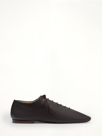 Lemaire's Souris Flat Classic Derbies in Dark Chocolate is a sophisticated footwear choice for the modern individual. These derbies offer a timeless design with a rich, dark chocolate hue that complements any wardrobe. - Composition: Main material: 100% lamb Main lining: 100% cow - Classic derby style with a sleek silhouette - Rich dark chocolate color for versatile styling - Flat sole for comfortable all-day wear - Ideal for both formal and casual occasions - Made in - SKU: FO0245LL0070 BR490
