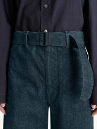 Lemaire's Twisted Belted Pants in Denim Indigo is a stylish and versatile addition to any wardrobe. These pants feature a unique twisted design and a flattering belted waist. - Composition: Main fabric: 100% cotton Main lining: 100% cotton - Unique twisted design for a modern look - Flattering belted waist for a customizable fit - Crafted in a classic denim indigo color - Versatile style suitable for various occasions - Functional pockets for added convenience - Made in - SKU: PA326LD1056 BL760