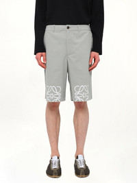 Loewe's Anagram Shorts in Light Grey is a stylish and versatile addition to any wardrobe. These shorts feature a subtle yet distinctive design that embodies modern elegance. - Composition: Exterior: 5.0% Vacuno-Calf Skin 95.0% Algodon-Cotton Interior: 5.0% Poliester-Polyester 95.0% Algodon-Cotton - Light grey color for a neutral and sophisticated look - Embellished with Loewe's iconic Anagram motif - Comfortable fit suitable for casual and semi-formal occasions - Designed with attention to detail and high-quality craftsmanship - Made in Italy Model is 187 cm and wears size 48 SKU: H526Y1AW24 1130