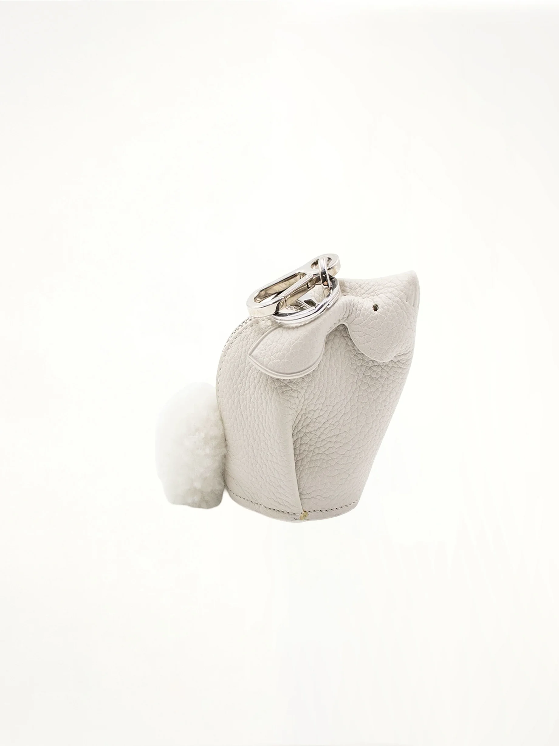 Add a playful touch to your handbag with our Bunny Charm, crafted from soft grained calfskin in a crisp white hue. The charm features intricate detailing and a practical clip, making it easy to attach to any bag. - Composition: 100% Calfskin Leather - Zipped fastening - Hook and D-ring - Embossed branding in the bottom SKU: 199.12.T40 2100